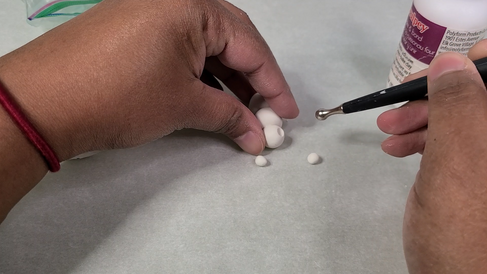 I kneaded the clay with my hand and rolled three balls to make a small, medium, and large size. I then rolled two even smaller sized balls for the eyes. I shaped the largest ball of polymer clay with a slight point on one end to resemble an online image I referenced for creating this craft project.